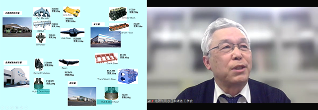最初に佐藤氏のこれまでの取り組み(前職の株式会社アイメタルテクノロジー(現 株式会社IJTT)での取り組み)の概要をご紹介いただき、鋳物欠陥と砂性状のばらつきの関係を丁寧に解説いただいた。砂性状の安定化にはCB値をコントロールすることが重要であることについて実験データを示しながら説明いただいた。また、砂性状のばらつきを抑える混練条件や生型造型機の進歩、砂型の変遷などを分かり易くご紹介いただいた。オンライン形式による講演会のため参加しやすいという理由だけではなく、多くの生産現場で課題となっている内容に対して、これまでの取り組みを豊富な情報量でご紹介いただいたということもあり、65名もの多くの方々が聴講された。