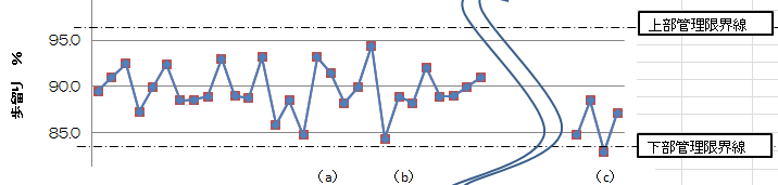 図2の(a)点、(b)点は、図1の正規分布曲線μ―3sとμ―2sの中に入っている点であり、不良でも異常でもない。