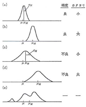 • ③ かたより(bias)、正確さ(accuracy)は、ある測定法で無限回数測定した場合に得られるデータの分布の平均値と、真の値の差のことをいう。精度と正確さを確保するのは、主として測定及びサンプリング技術等の問題である
